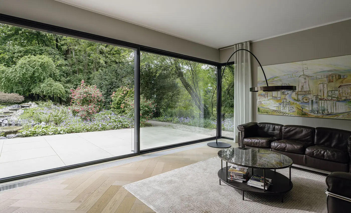 Das cero III Schiebefenster definiert modernes Wohnen neu. Mit bis zu 15 m² Glasfläche pro Flügel eröffnet es völlig neue Perspektiven in Architektur und Raumgestaltung. Schlanke Profile und rahmenlose Ansichten schaffen ein ästhetisches Gesamtbild, das Licht und Weite in den Mittelpunkt stellt.